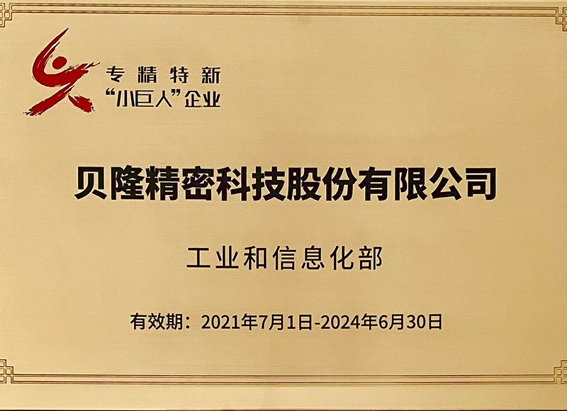 貝隆精密科技股份有限公司(股票代碼:301567)成立于2007年,坐落于中國模具之鄉、浙東名城浙江省余姚市,公司是專業從事精密注塑、沖壓、埋入成型、模具研發與制造的高新技術企業。被評定為國家制造業單項冠軍、國家級專精特新小巨人企業、國家知識產權優勢企業。